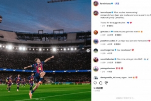 費(fèi)爾明也在賽后通過社媒曬出自己的激情慶祝照,并配文:“多么精彩的巴薩回家之戰(zhàn)!能在諾坎普球場(chǎng)出場(chǎng)并進(jìn)球,簡(jiǎn)直像做夢(mèng)一樣!感謝巴薩球迷的支持!”