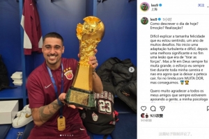 上海海港前鋒萊昂納多在社媒寫(xiě)道:“我該如何形容今天?是激動(dòng)?還是成就?