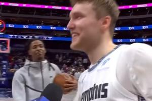 賽后,灰熊球員卡姆·斯潘塞接受采訪,莫蘭特插入對(duì)話,說(shuō)道:“告訴他們今晚最好的射手是誰(shuí),不是來(lái)自金州的那個(gè)家伙。(指克萊)”