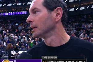 據(jù)統(tǒng)計(jì),本賽季當(dāng)湖人上半場領(lǐng)先時(shí)7勝0負(fù),未嘗一敗,位列聯(lián)盟第三多。