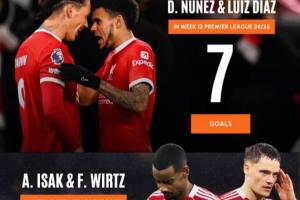 今年夏窗利物浦花費1.45億歐元+1.25億歐元簽下兩大新援伊薩克和維爾茨,但12輪英超過后,兩人顆粒未收,只有伊薩克在聯(lián)賽杯中打進一球。