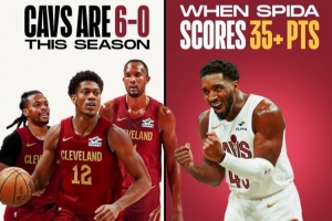 據(jù)統(tǒng)計,這是米切爾本賽季至今第6次單場至少砍下35分,在這6場比賽中,騎士隊保持全勝。而騎士本賽季的戰(zhàn)績則是12勝6負。