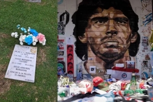 如今,馬拉多納長(zhǎng)眠于布宜諾斯艾利斯貝拉維斯塔花園私人墓地,與他的父母朵娜·托塔和老迭戈相伴。在那里,一塊簡(jiǎn)樸的墓碑守護(hù)著這位阿根廷球星的遺骸。由于一些不法分子企圖盜竊,這塊墓碑不得不頻繁更換。無(wú)論他們是否得逞,都無(wú)法抹去他在全世界足球迷心中的記憶。