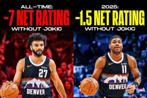 歷史上,沒(méi)有約基奇在場(chǎng)時(shí),掘金隊(duì)的表現(xiàn)常常會(huì)拖累全隊(duì),凈效率值通常會(huì)降到-7.0甚至更低。