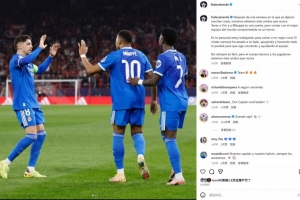 巴爾韋德也在社媒曬出與姆巴佩、維尼修斯慶祝合影,配文寫道:“經(jīng)過一周的風(fēng)波,我們比以往任何時(shí)候都更加團(tuán)結(jié)。擁有維尼修斯和姆巴佩是我們的幸運(yùn),但能夠擁有一支全力以赴的世界最佳球隊(duì)更是我們的榮幸。就我個(gè)人而言,我正在努力恢復(fù)到最佳狀態(tài)。主教練一直在我身邊支持我,盡一切可能幫助我繼續(xù)成長并為球隊(duì)做出貢獻(xiàn)。雖然并不總是一帆風(fēng)順,但我們教練組和球員們比以往任何時(shí)候都更加團(tuán)結(jié)。”