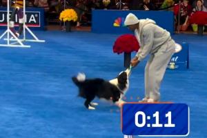 比賽中,馬克西與兩只狗狗的配合不太順暢,逗樂了現(xiàn)場的觀眾朋友們。