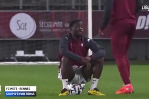 不滿自己無緣首發(fā)!梅斯后衛(wèi)賽前拒絕參加熱身,坐在足球上不動(dòng)彈