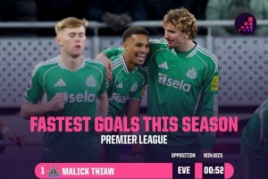 體育資訊11月30日訊 紐卡在本輪英超對(duì)陣埃弗頓,佳夫?yàn)榭完?duì)閃擊建功。數(shù)據(jù)統(tǒng)計(jì)顯示,他也打破了福登的本賽季英超最快進(jìn)球紀(jì)錄。