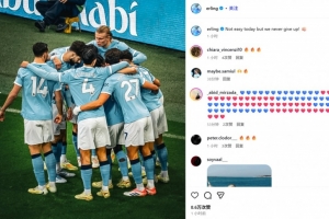 哈蘭德也在賽后通過社媒曬出全隊相擁慶祝照,并配文:“今天并不容易,但我們從不放棄!”