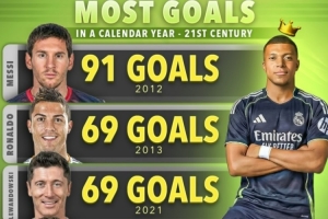 體育資訊12月1日訊 數(shù)據(jù)網(wǎng)站Score90盤點(diǎn)了21世紀(jì)以來單一自然年進(jìn)球榜,其中梅西91球高居榜首,姆巴佩今年60球第6,具體如下: