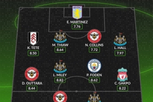 體育資訊12月1日訊 本輪英超已經(jīng)完賽,whoscored也統(tǒng)計(jì)了本輪英超評(píng)分最佳陣,紐卡4將在列、布倫特福德3人入圍。