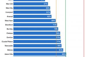 25-26賽季英超俱樂(lè)部陣容成本比例預(yù)估