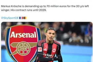 報(bào)道稱阿森納已經(jīng)明確展現(xiàn)出對(duì)這位20歲左邊鋒的興趣,有意在夏窗引進(jìn),法蘭克福也對(duì)此已經(jīng)知悉。法蘭克福體育總監(jiān)馬克爾斯·克羅斯切對(duì)球員要求高達(dá)7000萬歐元的轉(zhuǎn)會(huì)費(fèi)。