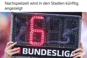 2026年起,德甲和德乙的球場(chǎng)大屏幕將顯示補(bǔ)時(shí)具體時(shí)間