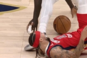 GIF-阿爾瓦拉多倒地拼搶時受傷,痛到在地上打滾