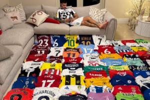 體育資訊12月5日訊 紐卡斯爾中場吉馬良斯今天在Instagram發(fā)照片,曬出了自己的球衣收藏。
