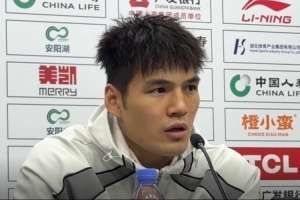 陳國(guó)豪:其實(shí)就是打完這幾天的比賽,自己想的也很多,因?yàn)榇_實(shí)前幾場(chǎng)比賽打的不是在自己的節(jié)奏上,也有感覺(jué)有點(diǎn)壓抑吧。早上開(kāi)完會(huì)我也跟主教練有溝通過(guò),他跟我提了很多建議,然后讓我保持自信,所以在這場(chǎng)比賽中,我希望就是能有所發(fā)揮吧。