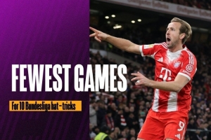 據(jù)Opta統(tǒng)計,凱恩出戰(zhàn)76場德甲比賽,10次上演帽子戲法,他是德甲歷史10次戴帽所用場次最少的球員,只有4名球員德甲戴帽次數(shù)更多,他們是蓋德·穆勒、萊萬、馬里奧·戈麥斯和克勞斯·費(fèi)舍爾。
