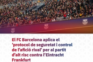 體育資訊12月8日訊 巴薩發(fā)布官方公告,12月10日4點在諾坎普球場對陣法蘭克福的歐冠比賽被列為“高風險賽事”,俱樂部已啟動嚴格的安保管控方案。