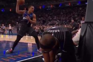 體育資訊12月09日訊 尼克斯106-100主場戰(zhàn)勝魔術(shù)的比賽中,貝恩曾在一次快攻中,拿球怒砸OG,最終吃到技犯。