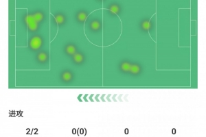 射門(mén)2次射正2次,丟失球權(quán)4次,預(yù)期進(jìn)球0.38球