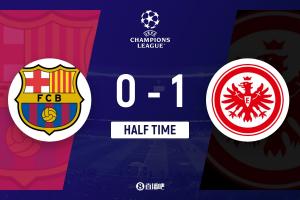半場(chǎng)結(jié)束,巴薩0-1法蘭克福。