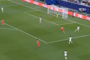 蘇丹中場阿馬爾·泰弗在己方底線附近過人,隨后詭異地“吊射”自家大門,門將勉強(qiáng)將球一撲,球落到對手腳下,然而巴林前鋒阿里·馬丹面對半個(gè)空門卻將球打偏婉拒大禮,場上一時(shí)不分?jǐn)澄遥?/p>