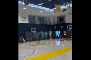 東契奇訓(xùn)練結(jié)束之后的固定節(jié)目,投射中場(chǎng)三分