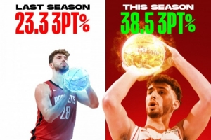 阿爾佩倫·申京本賽季三分球命中率大幅提升,解鎖了全新的比賽風格。??
