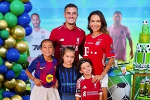 庫蒂尼奧為兒子慶祝生日,一家人身穿國米、利物浦、巴薩和拜仁的球衣,這都是庫蒂尼奧在歐洲效力過的俱樂部。