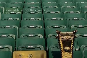 國安離世球迷楊雪的金色專屬座椅,與金色的獎(jiǎng)杯交相輝映