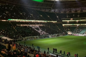 據(jù)“天天體育”報(bào)道,賽前工體北看臺(tái)國(guó)安球迷用手電筒組成了足協(xié)杯冠軍獎(jiǎng)杯的形狀,慶祝球隊(duì)足協(xié)杯奪冠。