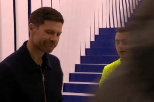 下半場(chǎng)比賽開(kāi)始前,阿隆索在球員找到蒂爾潘,詢問(wèn)上半場(chǎng)比賽的判罰,蒂爾潘給出了解釋?zhuān)珡陌⒙∷骰氐教嫜a(bǔ)席與教練組交談時(shí)的神情來(lái)看,顯然對(duì)于裁判的解釋并不滿意。