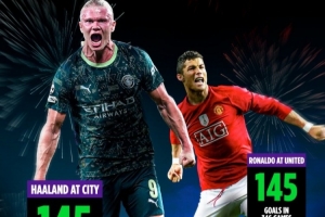 據(jù)beinsport數(shù)據(jù)統(tǒng)計,哈蘭德如今已經(jīng)在曼城打進(jìn)的進(jìn)球數(shù)追平了C羅在曼聯(lián)時期的總進(jìn)球數(shù),而且他所用的比賽場次不到羅納爾多的一半!