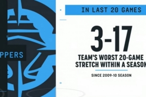 備注:2009-10賽季快船最終取得29勝53負(fù)戰(zhàn)績