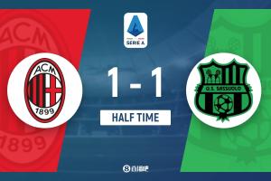 半場-AC米蘭暫1-1薩索洛 奇克精彩助攻19歲巴特薩基扳平