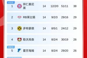 體育資訊12月15日訊 德甲第14輪基本結束,拜仁2-2美因茨仍擴大領先優(yōu)勢,現(xiàn)9分領跑,此前第2的萊比錫本輪1-3不敵柏林聯(lián)合,第3的多特1-1憾平弗賴堡,最新積分榜如下: