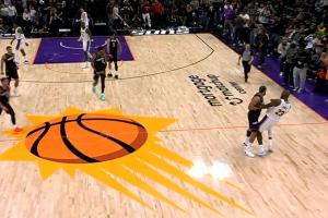 比賽最后時(shí)刻,狄龍飚中三分后不滿被詹姆斯撲倒,起身與詹姆斯對(duì)撞吃T,累積兩T被驅(qū)逐。