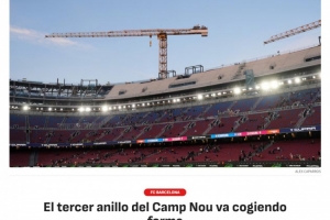 《阿斯報》表示,諾坎普球場的第三層看臺正在建設(shè)中,側(cè)門和南門區(qū)域的工程進展順利,預(yù)制混凝土板正在安裝中。新的看臺將比之前的看臺更高更陡,預(yù)計將于2026-27賽季完工,頂棚將于2027年底至2028年初之間完成,該球場翻新后預(yù)計可容納約10.5萬名觀眾。