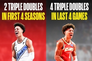 有意思的是,杰倫·約翰遜生涯一共拿到8次三雙,而他生涯前4個(gè)賽季才拿到過兩次。而本賽季就拿到了6次,其中更是包含這連續(xù)4場(chǎng)三雙。