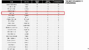在國(guó)際足聯(lián)公布的最佳陣前鋒位置評(píng)分中,拉菲尼亞排名第五,其中球迷評(píng)分5分、專家評(píng)分7分,總得分12分,落后于登貝萊(26分)、亞馬爾(22分)、哈蘭德(17分)、姆巴佩(16分)。