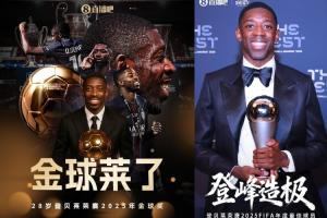 體育資訊12月17日訊 登貝萊榮膺2025FIFA年度最佳球員,包攬2025金球獎(jiǎng)和2025FIFA最佳兩項(xiàng)大獎(jiǎng)。