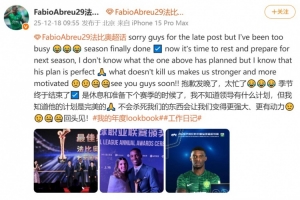 體育資訊12月18日訊 在個人社媒,國安前鋒法比奧總結(jié)2025賽季。
