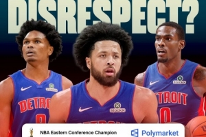 活塞隊以21勝5負的戰(zhàn)績領跑東部,但據預測機構Polymarket預測,他們進入總決賽的概率僅為13% ??