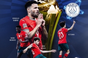 葡萄牙隊發(fā)布海報,祝賀效力巴黎的內(nèi)維斯等葡萄牙籍球員一年7冠