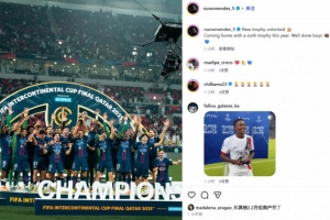體育資訊12月18日訊 巴黎在洲際杯決賽點(diǎn)球擊敗弗拉門(mén)戈,努諾·門(mén)德斯首發(fā)踢滿全場(chǎng)。