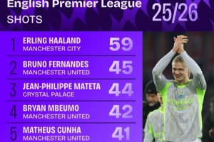 本賽季英超射門+射正榜:哈蘭德同時(shí)領(lǐng)跑,B費(fèi)、姆伯莫在列