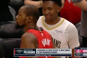 鵜鶘25分加時大逆轉戰(zhàn)勝火箭,25分逆轉也追平了鵜鶘隊史最大逆轉分差紀錄