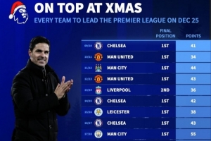 體育資訊12月19日訊 《轉(zhuǎn)會(huì)市場(chǎng)》列出了近年英超圣誕榜首球隊(duì)的積分及最終排名,近7年僅2隊(duì)最終奪冠。