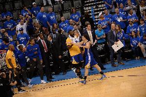 2016年西決G6,雷霆3比2手握賽點,但克萊那一場天神下凡轟進11個三分球,把系列賽帶回了灣區(qū)。